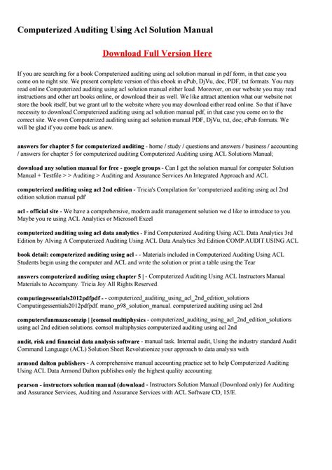 Download online COMPUTERIZED AUDITING USING ACL SOLUTIONS Library Binding